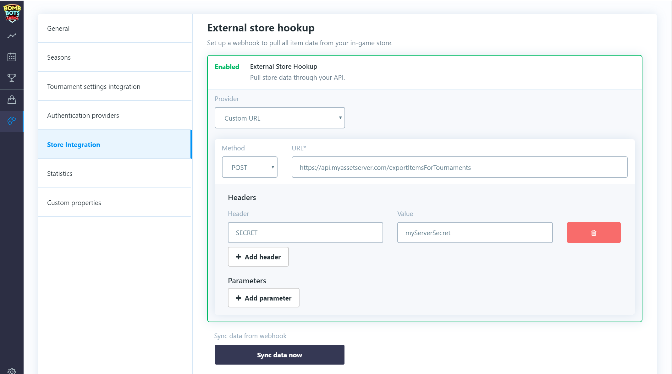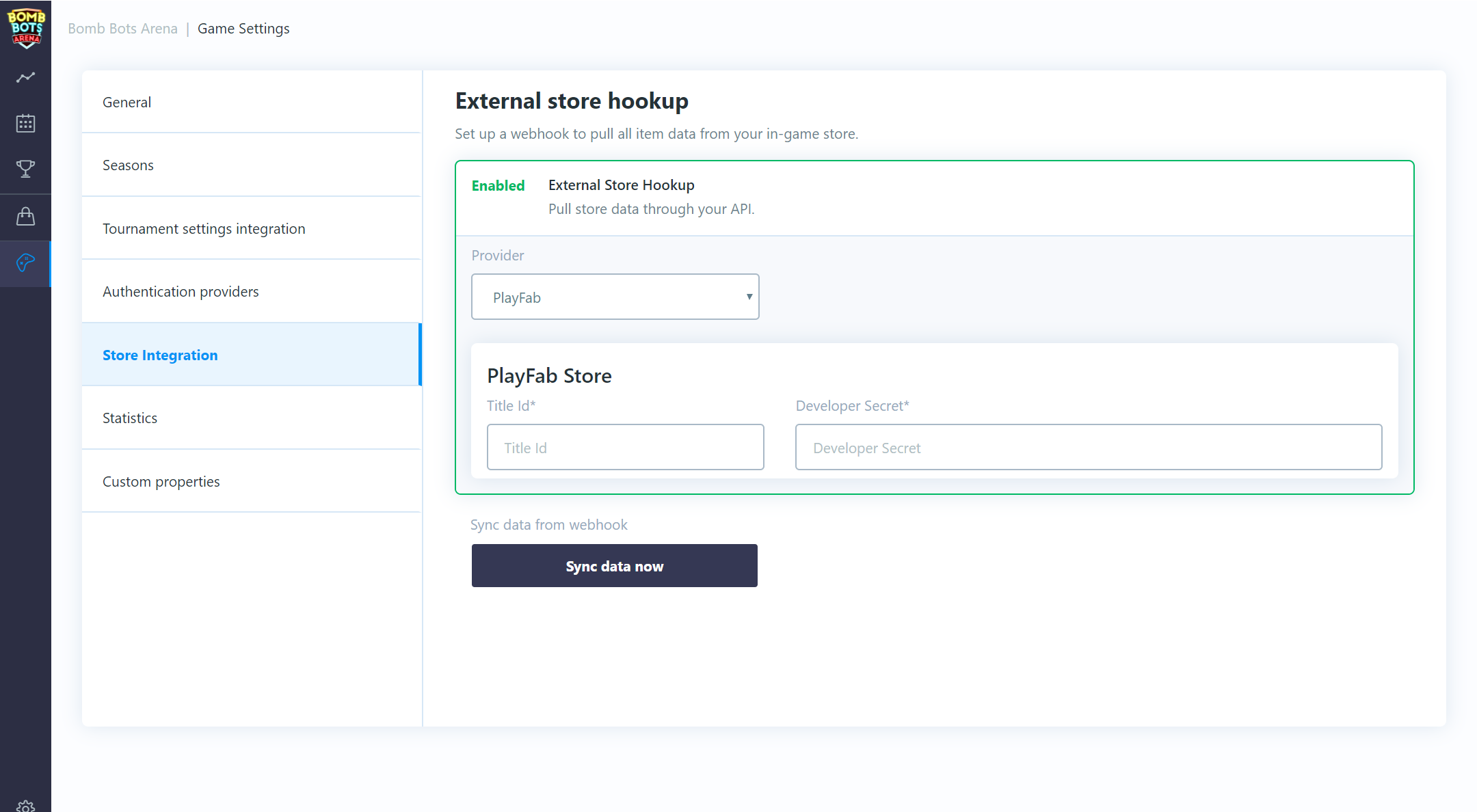 Once there is a endpoint that returns the required format, navigate to Game Settings/Store Integration and enable "external store hookup".