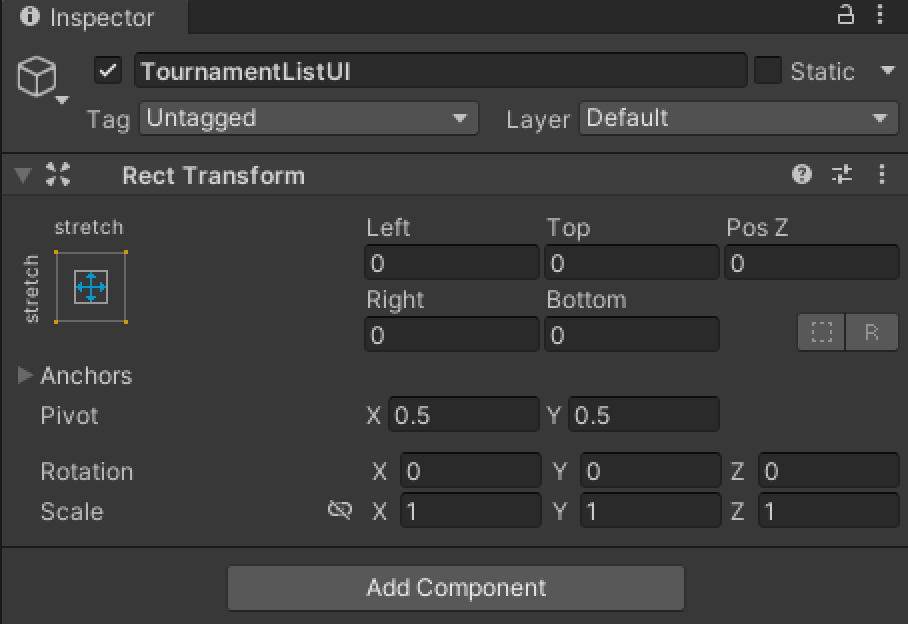 TournamentListUI > TournamentListScreen > SubScreenis Enabled.
