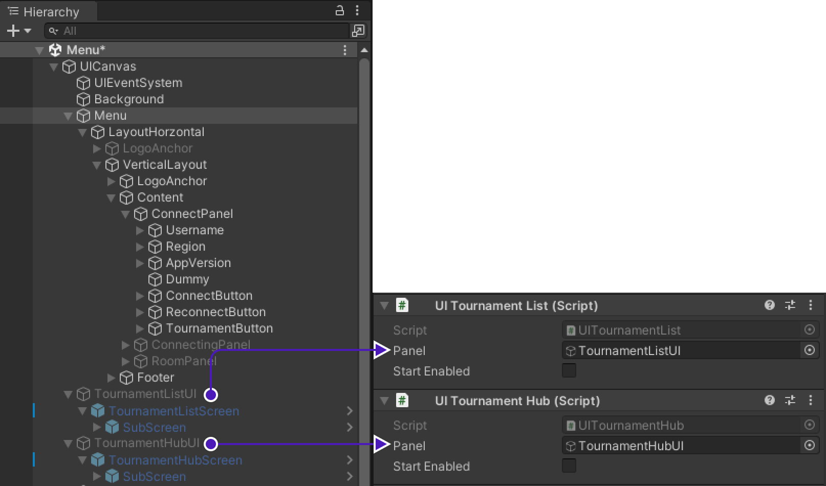 UITournamentListandUITournamentHubtoMenuobject inHierarchyto make them accessible. -