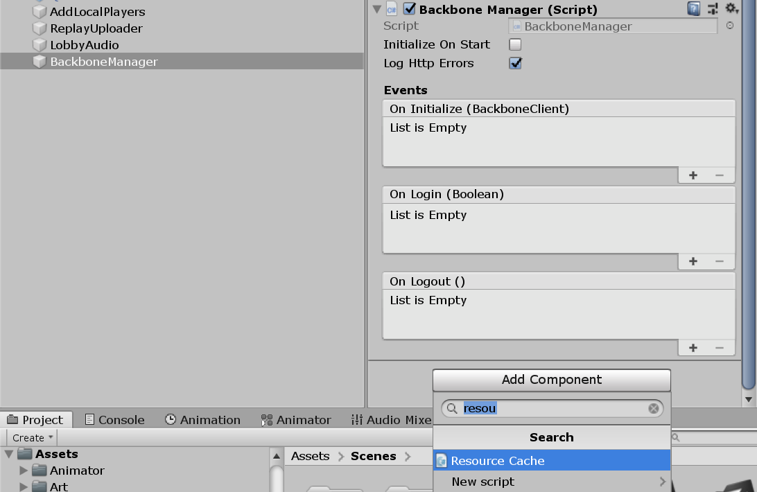 Also add ResourceCache script into same scene object.
